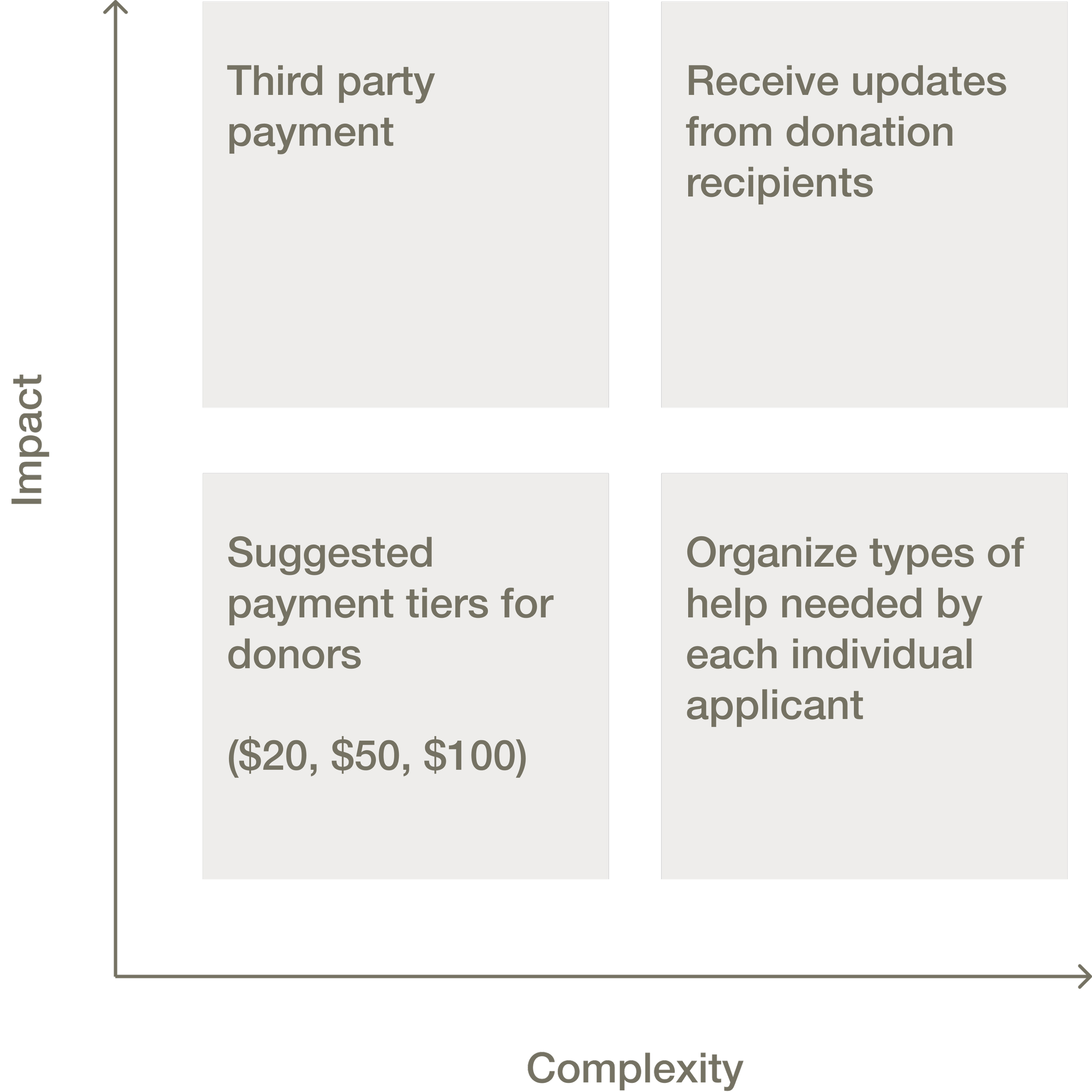 By comparing complexity to impact, we could determine how to prioritize our design features