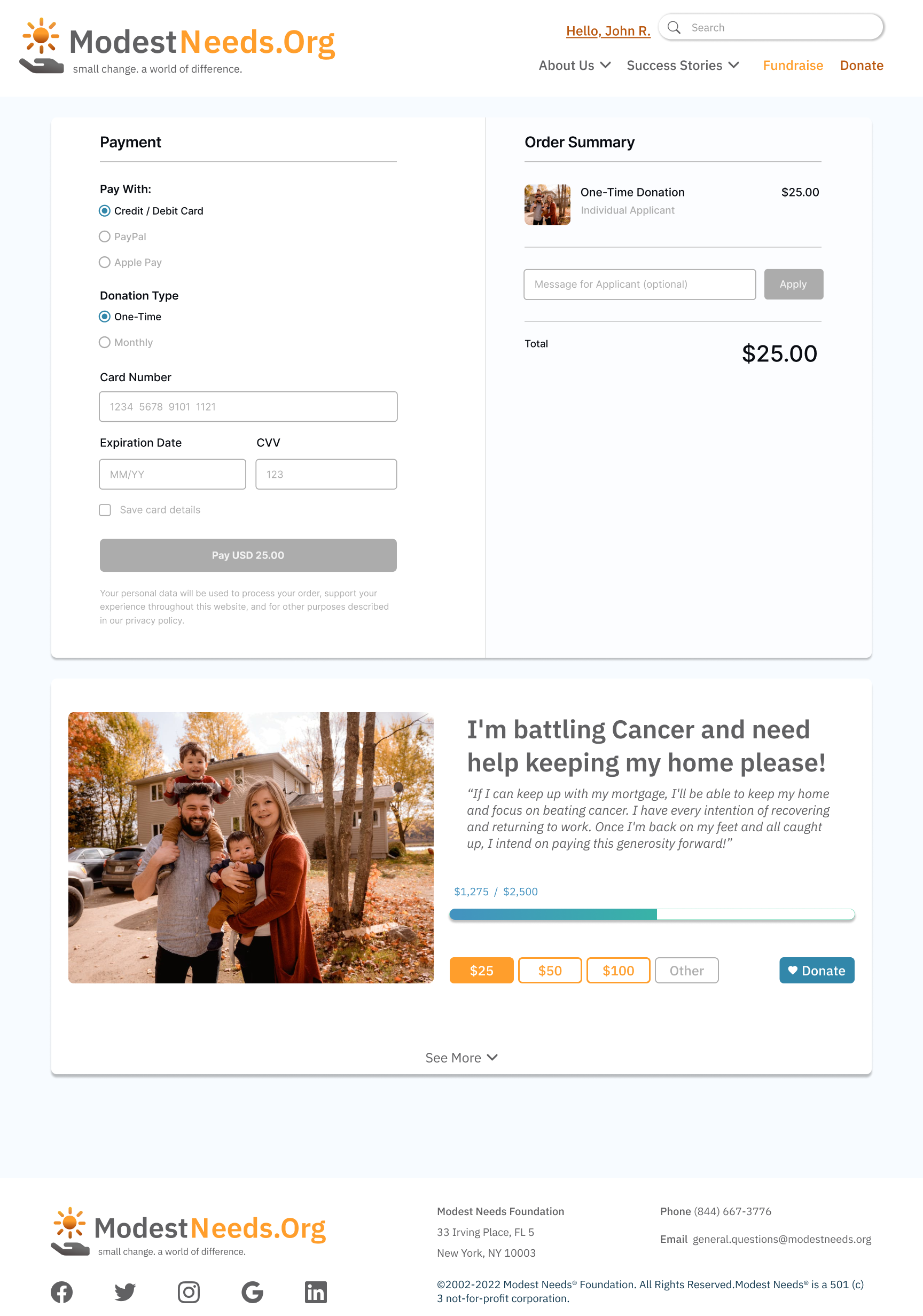 Modest Needs is a nonprofit organization offering short-term financial assistance. Their website serves as the primary platform for donations and applications, making usability and clarity critical to their mission.